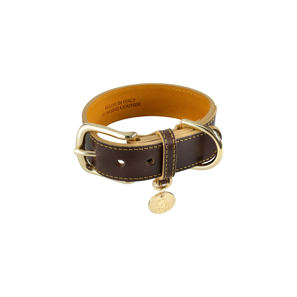 Il collare Venezia è realizzato con pelle conciata vegetale certificata Consorzio Vera Pelle, un pezzo unico nel suo genere per qualità, durabilità e stile.